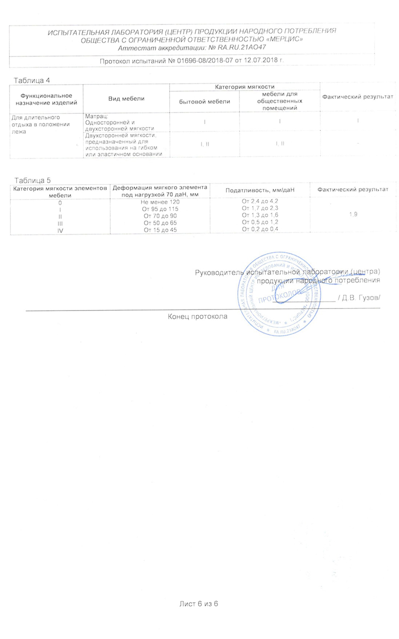 Гарантийные сроки от 18 месяцев до 60 месяцев, с даты, которая указана в накладной, в зависимости от модели матраса